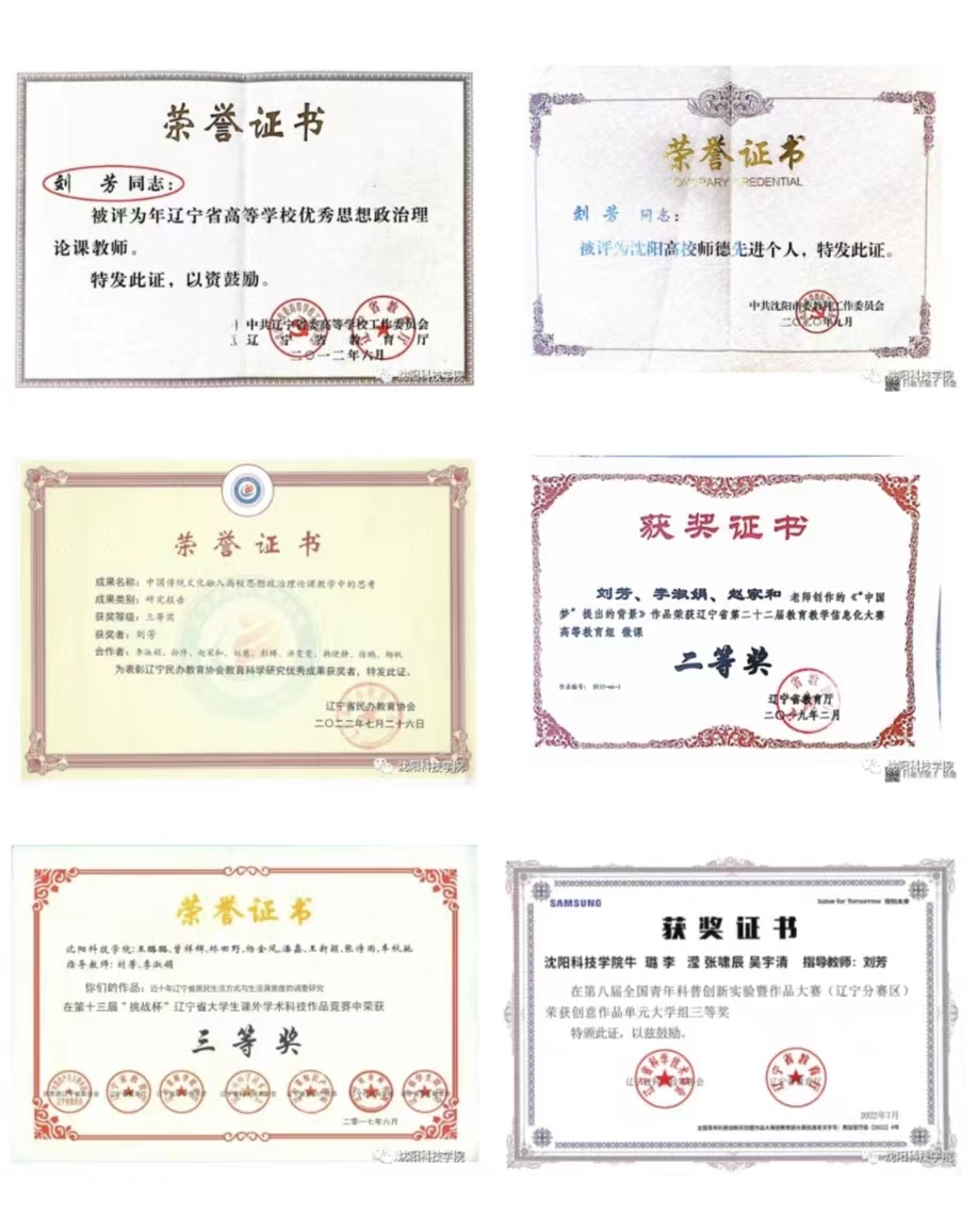 近年来,刘芳同志积极指导员工开展以社会调查为主的实践活动,注重培养员工创新创业能力,取得了一定的成绩。主持指导《我带您看未来,您带我忆过去(老员工与老年人组织互动服务)》项目,获得2016年“创青春”辽宁省老员工创业大赛省级铜奖;《当代老员工就业方式和就业观念转变的调查研究》获得第十三届“挑战杯”辽宁省老员工课外学术科技作品竞赛省级二等奖;《近十年辽宁省居民生活方式与生活满意度的调查研究》获得第十三届“挑战杯”辽宁省老员工课外学术科技作品竞赛省级三等奖;指导员工参加科普创新实验暨作品大赛,获得省级三等奖。