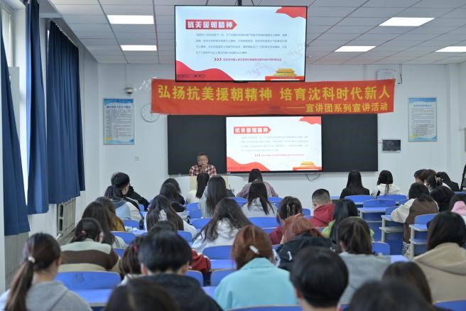李强教授围绕“抗美援朝的历史背景”“抗美援朝战争的过程及主要战役”“抗美援朝的英雄人物”等内容,带领现场师生回到了那个硝烟弥漫、英雄辈出的年代。战场上,硝烟弥漫,炮火如荼。志愿军的身影在火光中若隐若现,信念在硝烟中愈发坚定。他们以身躯筑成坚不可摧的钢铁长城,誓死捍卫祖国安宁与人民幸福。在李强教授的讲述下,在场师生无不动容,伟大的抗美援朝精神已深深镌刻在每一名沈科人的心中。