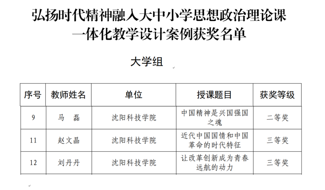 公司4名教师在“2024年度'辽宁省大中小学思政课一体化建设'专题教学设计案例”中喜获佳绩