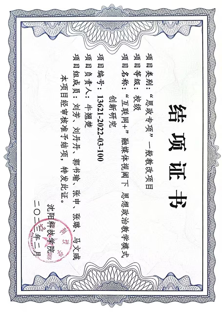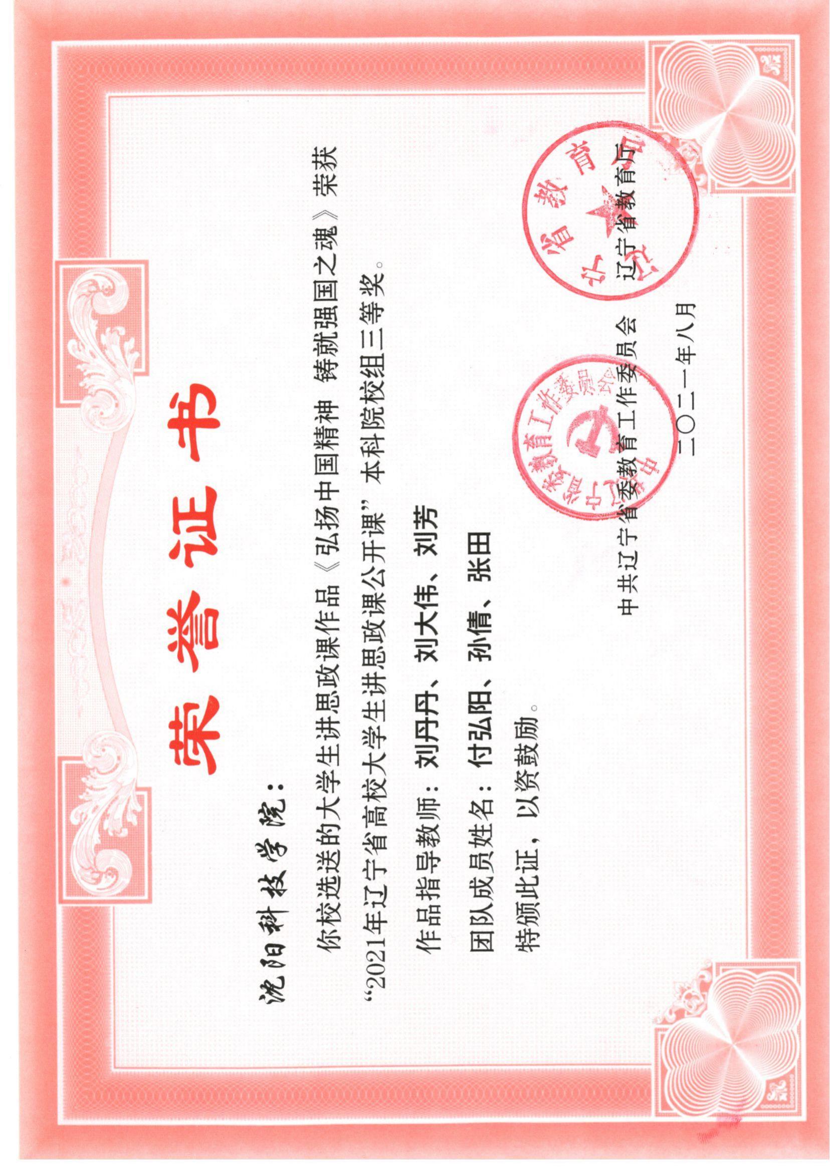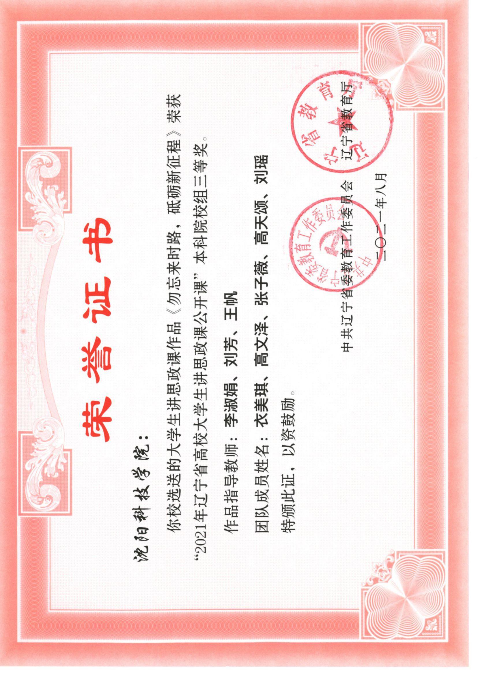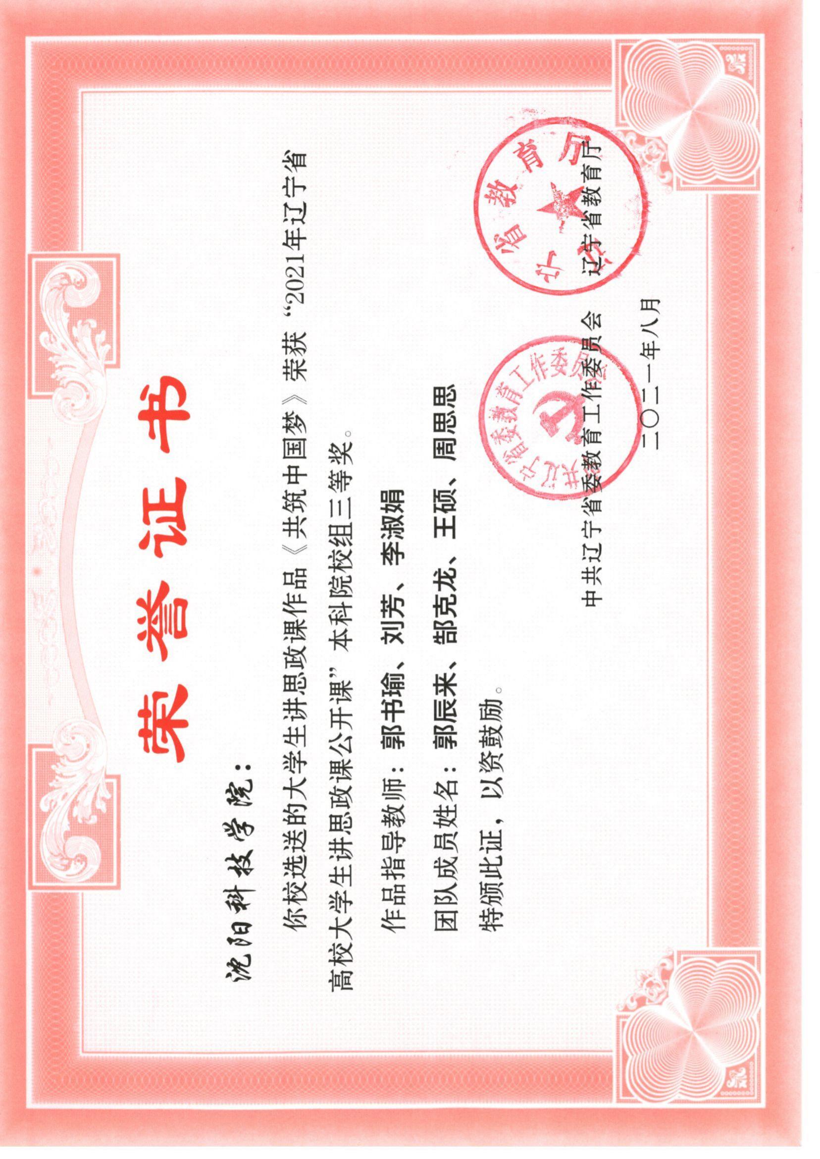 郭书瑜、刘芳、李淑娟老师指导作品荣获“2021年辽宁省高校老员工讲思政课公开课”本科院校组三等奖...