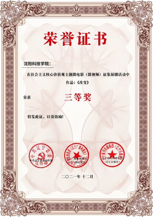 在社会主义核心价值观主题微电影(微视频)征集展播活动中作品:《改变》荣获三等奖...