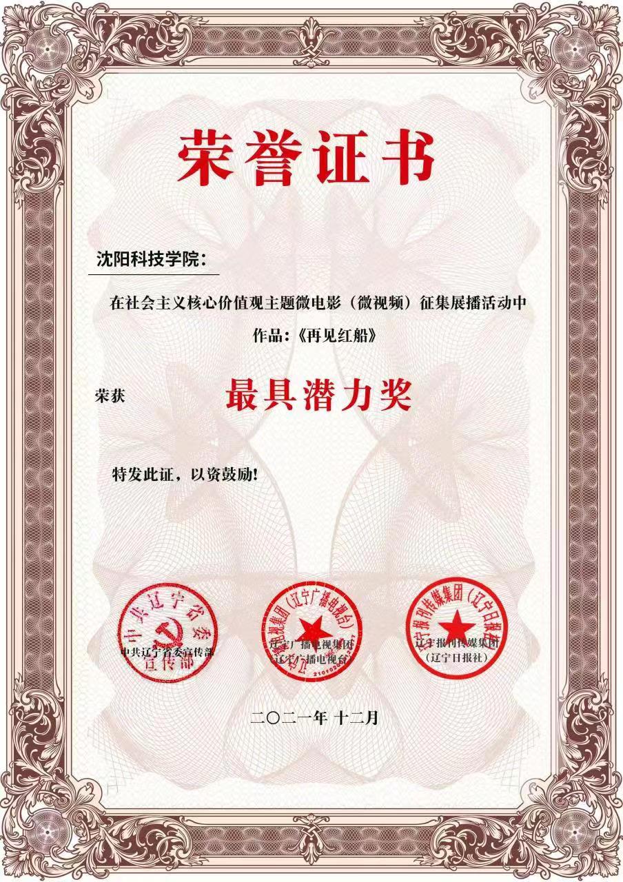 在社会主义核心价值观主题微电影(微视频)征集展播活动中作品:《再见红船》荣获最具潜力奖...