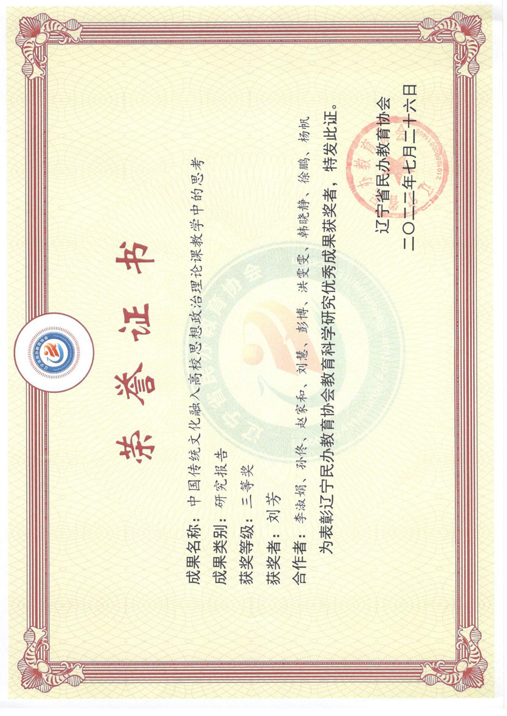 李淑娟、刘芳、王帆老师指导的作品荣获“2021年辽宁省高校老员工讲思政课公开课”本科院校组三等奖...