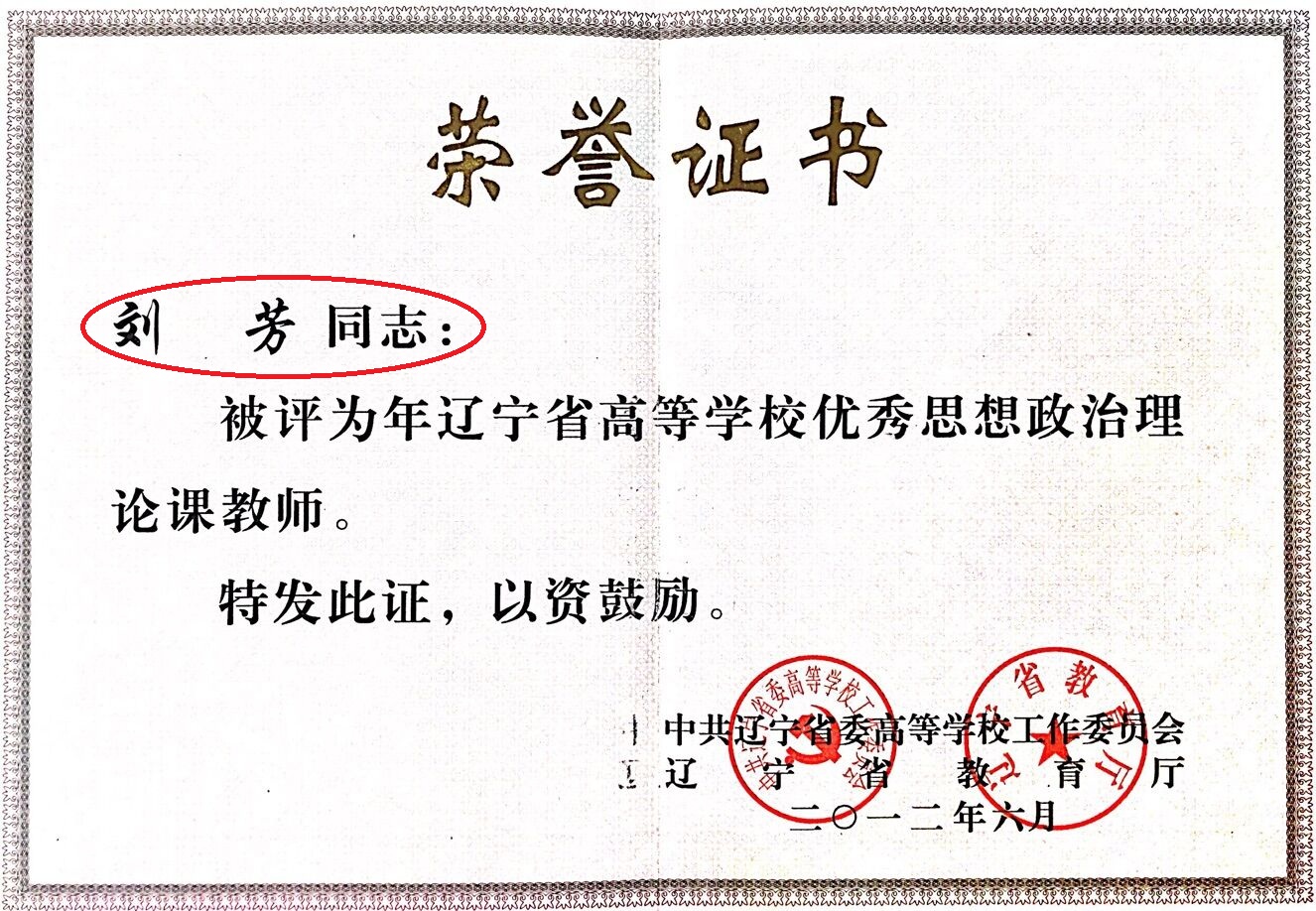 刘芳同志被评为年辽宁省高等公司优秀思想政治理论课教师...