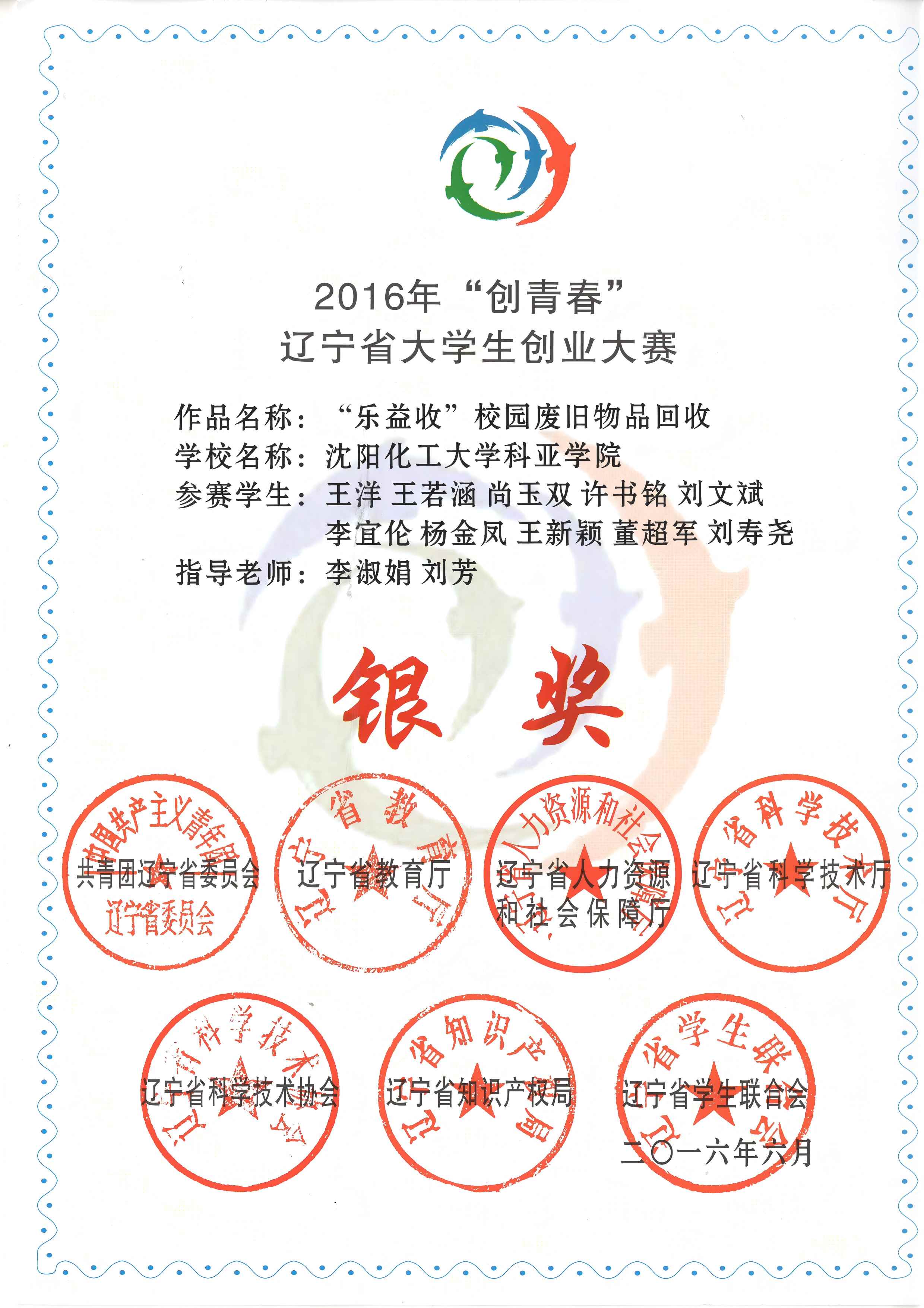 2016年李淑娟、刘芳老师指导作品获得“创青春”辽宁省老员工创业大赛银奖...