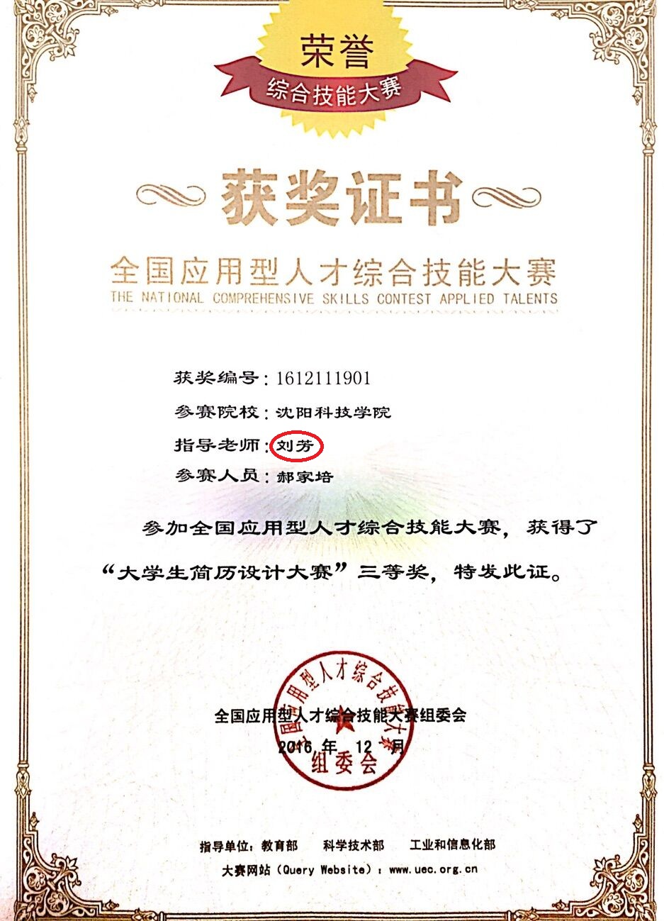刘芳老师指导作品参加全国应用型人才综合技能大赛,获得了“老员工简历设计大赛”三等奖...