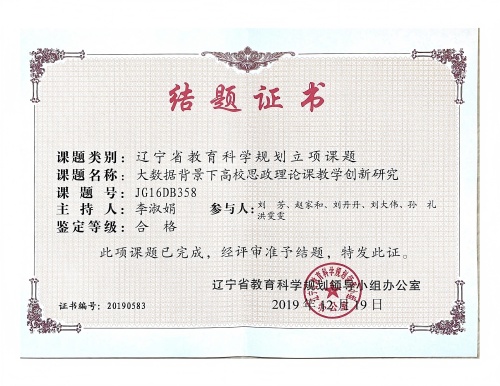 李淑娟老师主持的省级课题:大数据背景下高校思政理论课教学创新研究顺利结题...