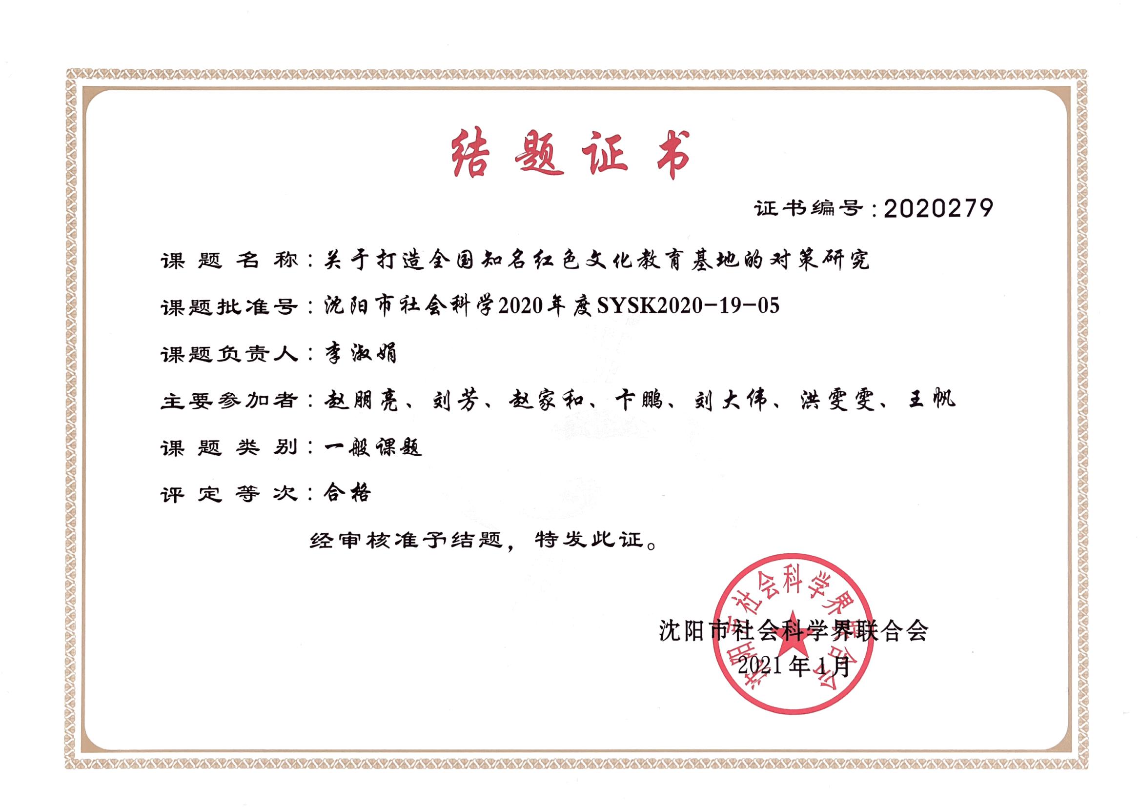 李淑娟老师主持的市级课题:关于打造全国知名红色文化教育基地的对策研究顺利结题...